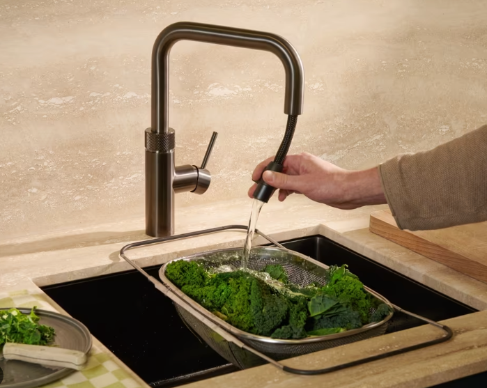 De Quooker Flex Square combineert kokend water op aanvraag met een flexibele uittrekslang en een strak, vierkant design. Grote pannen vullen, verse groenten afspoelen, je spoelbak schoonmaken – het gebeurt allemaal met dezelfde kraan. Geen gedoe, gewoon handig én mooi.