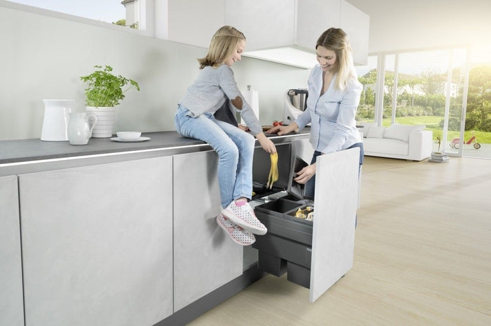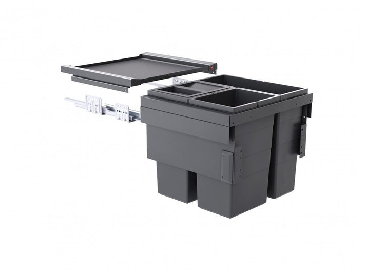 De Hailo Cargo Synchro 44 liter is een premium, uitschuifbaar afvalscheidingssysteem met drie aparte binnenemmers – perfect afgestemd op frontgeleide keukenkasten van 500 mm breed. Deze slimme oplossing biedt niet alleen een efficiënte indeling van keukenafval, maar tilt ook het gebruiksgemak naar een hoger niveau met geavanceerde, volledig gesynchroniseerde, dempende geleiders.