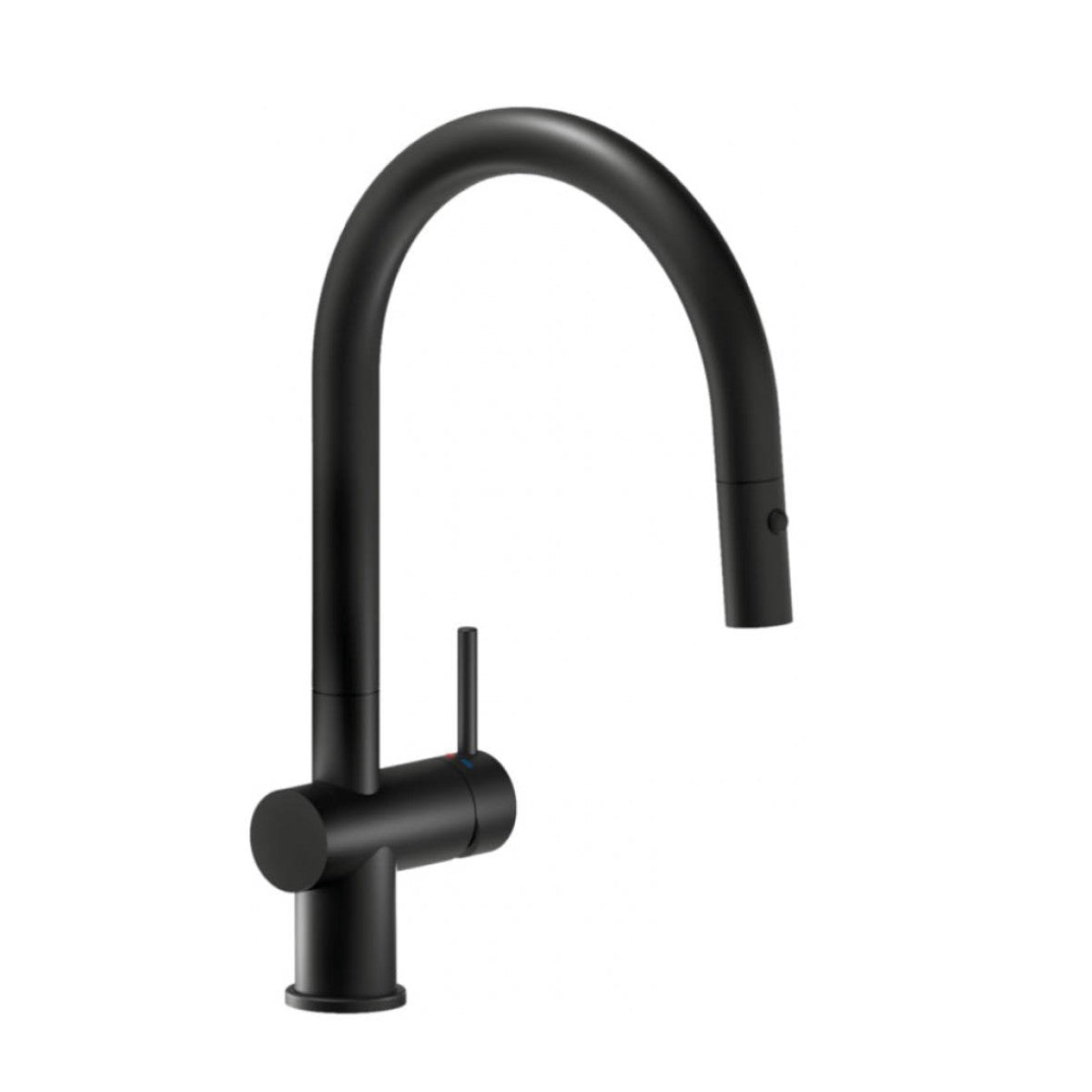 De Alpha Live 0237 keukenkraan in zwart biedt de perfecte balans tussen stijl en functionaliteit. Met zijn matte zwarte afwerking brengt deze kraan een moderne, luxe uitstraling in je keuken, terwijl het ééngreeps ontwerp zorgt voor moeiteloze controle over de watertemperatuur en -stroom.