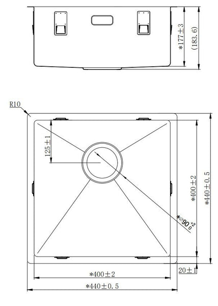 • Uitwendige afmetingen (LxB): 440 x 440 mm